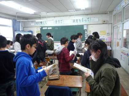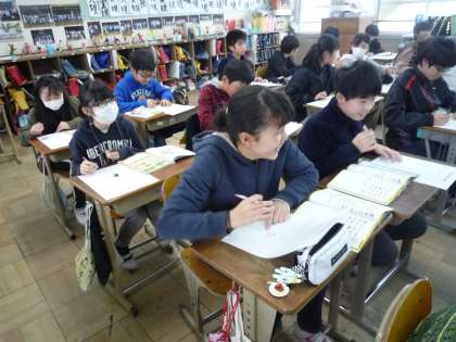 連携英語 公開日 2019/02/06 更新日 2019/02/06 6年生の部屋 6日(水)に,中学校の中原先生による 最後の連携英語がありました。 教科書を使って読む練習をした後 自分たちの町にあるものやないものを マップに書く活動をしました。 その他には, 大きな『スイミー』の絵本の 読み聞かせもしていただきました。 中原先生,2年間本当にお世話になりました。 中学校に行ったときは みんなのことをよろしくお願いします!