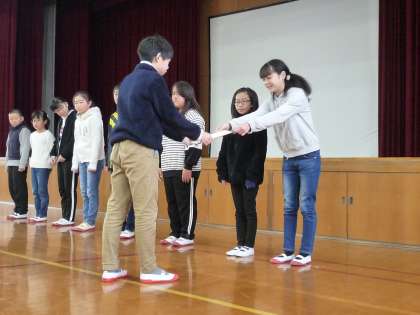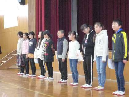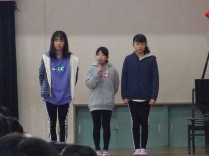 児童朝会2月 公開日 2019/02/14 更新日 2019/02/14 6年生の部屋 14日(木)に児童朝会がありました。 6年生が司会進行をします。 各委員会からの発表では 保健美化委員会が,校内美化清掃週間の取り組みの 賞状私をしてくれました。 6年生はさすが!2クラスとも 表彰してもらうことができました。 卒業まであと少しだけれど がんばって校内をきれいにしていこうね!