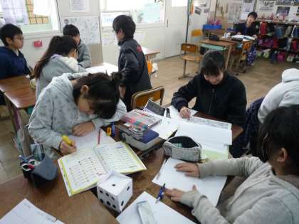 準備しよう 公開日 2019/02/15 更新日 2019/02/15 6年生の部屋 3月の発表に向けて 英語劇やすごろくなどの準備をがんばっています。 ずいぶんと出来上がったチームや まだまだ・・・のチームがありますが なんとかがんばって仕上げようね!