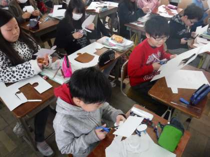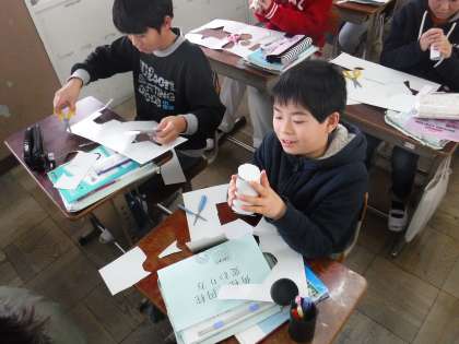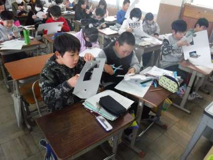 「側面の横の長さは円周の長さと同じ!」ということに気付き,展開図をかき上げていました。