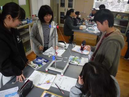 ふりこの長さを変えて,それぞれのふりこが往復する時間を計りました。