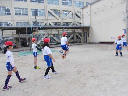 さすが4年生,タイミングをうまく見て,上手に跳ぶことができています!