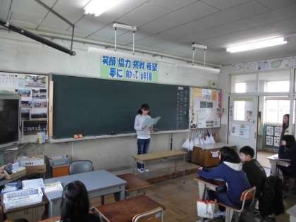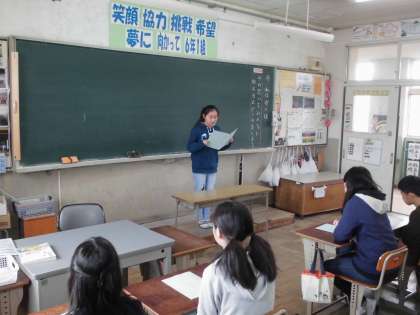 2月20日(水)は、小学校生活最後の授業参観・学級懇談会でした。今回は,国語「今、私は、ぼくは」のスピーチの会の様子を参観していただきました。お忙しい中,たくさんの皆様に参観していただき本当に嬉しく思っています。小学校生活を終えようとする今,自分たちが伝えたいことを一人一人スピーチ原稿にまとめ,おうちの方や学級のみんなに伝え合う活動をしました。子どもたちは,小学校生活や生まれてからの12年間を振り返り,感謝の気持ちや自分自身の成長したこと,これからの目標や夢,中学校に向けて頑張りたいことなど,心温まる素直な気持ちの作文を一人一人が発表することができました。今の素直な思いを伝え合うことができました。これからのことを想像したり,今までの家族の支えについて思い出したり,自分が大人になってからの姿を夢見ることができたり・・等,素晴らしい発表会になりました。