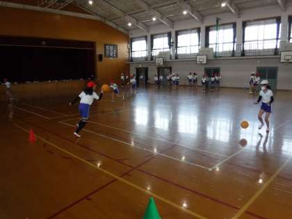 今日は,ドリブルリレーをしたりシュート練習をしたりするなどの体慣らしをしてから試合もしました。