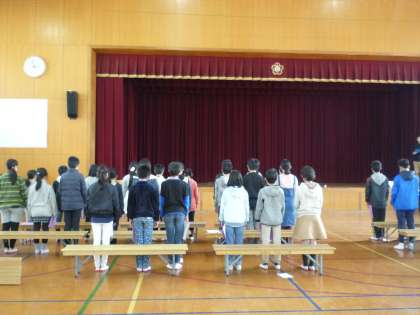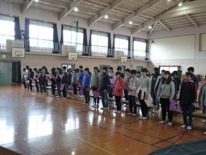 今日は体育館で卒業式の練習をしました。