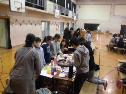 いつもはおうちの方においしいご飯を作ってもらっている子どもたちが,今回はおもてなしということで,準備から張り切って体育館を華やかに飾りつけし,スイートポテトやトッピング焼きの準備を頑張っていました。おうちの方に感謝の気持ちを伝えることができ大満足の子どもたちでした。