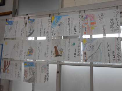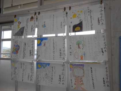 国語 モチモチの木 ポスター1 公開日 2019/03/14 更新日 2019/03/14 3年生の部屋 モチモチの木のポスターが仕上がりました。 心にのこった場面も様々で,力作ぞろいです。 図書室にある斉藤隆介さんの作品も借りてきて並べています。読書タイムにも読みたいですね。