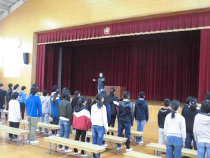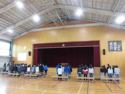 旅立ちの日にを心を込めて 公開日 2019/03/14 更新日 2019/03/14 6年生の部屋 今週も向島東中学校の山口先生に歌唱の指導をしていただきました。練習の回数を重ねるたびに,歌声がどんどんきれいに,声量も体育館に響き渡るようになってきました。みんなの気持ちが歌に込められている感じがしてきます。立派な態度で練習に臨み,卒業式には,リーダーとして頑張ってきた6年生の堂々とした姿を期待しています。