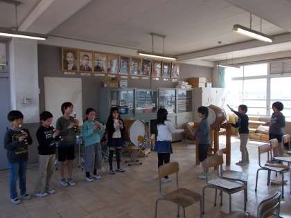 音楽 日本の音楽に親しもう 公開日 2019/03/15 更新日 2019/03/15 3年生の部屋 今日は発表会。 リコーダーと和太鼓のアンサンブルをしました。 各グループが発表後,アンコールがとても多かったので,様々な組み合わせで発表してもらいました。