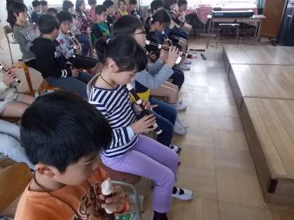 今日から楽器も交えてしてみようということで,リコーダーを久々に吹きました。
