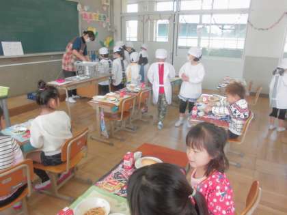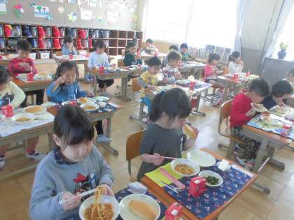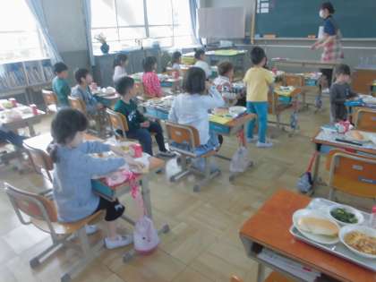 「給食がとってもおいしんよ☆」と1年生はとっても嬉しそうです。