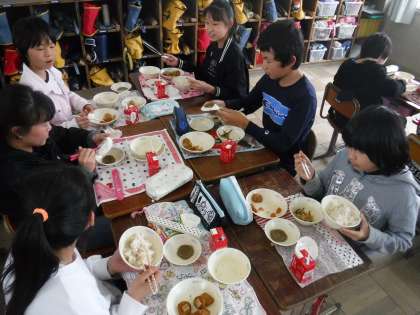「何でできているのかな〜?」と興味を持ちながら食べていました。