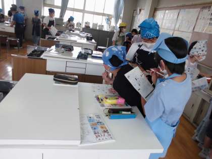 家庭科室を探検し,どこにどんな用具があるか,確かめました。チェックシートを持ちながら,素早く用具を見つけることができました。これからの家庭科室の利用が楽しみです。
