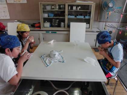 お茶を入れるために,グループで役割を分担しました。やかんやきゅうすを準備したり,ガスコンロを使ったりと意欲をもって学習に取り組みました。自分たちで入れたお茶は,おいしかったようです。おうちでも,だんらんの時に,お茶を入れることができたらいいですね。