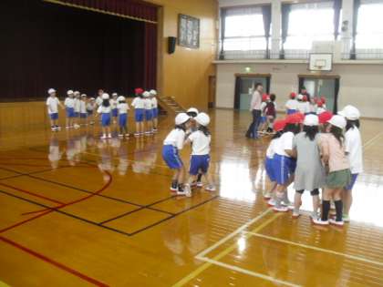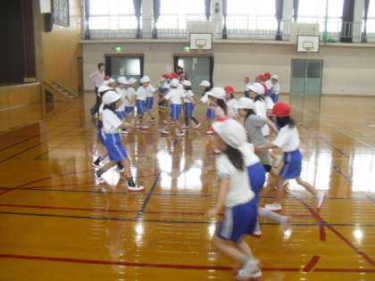 体育で,みんなで「はないちもんめ」をしました。