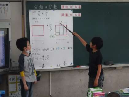 自分たちの力で! 公開日 2019/05/21 更新日 2019/05/21 6年生の部屋 算数の学習では,昨日よりレベルアップした問題に挑戦しました。 今日は担任が見本を見せずに,自分たちで説明の文章を考え,ペアで取り組んでいました。 何事も挑戦する姿は学級目標にも掲げているので,今後もそういった姿が増えてほしいですね。