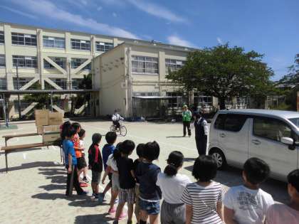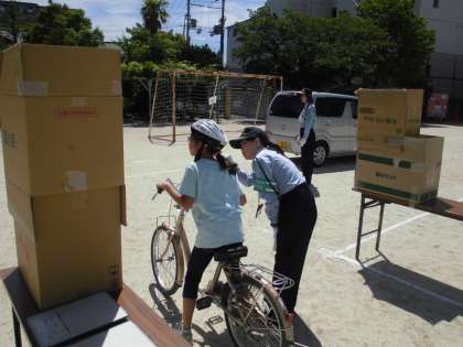 自転車安全教室 公開日 2019/05/22 更新日 2019/05/22 4年生の部屋 22日(水)には,伏見警察署の方や地域ボランティアの方にお世話になり,自転車教室が行われました。自転車免許教室には,交通ルールなどの学科試験と,実際に自転車に乗る実技テストがあります。実技テストには,交差点の渡り方や一時停止の方法,安全確認や停止の仕方などいろいろな項目がありました。みんな真剣な表情で頑張っていました。