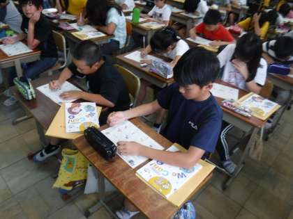 外国語の学習では,ふだん聞き取りが中心なので,今日は書くことにも挑戦しました。