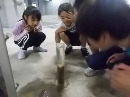 汚かった水が,5分後には微生物の力を借りて,きれいになっている様子を確認することができました。