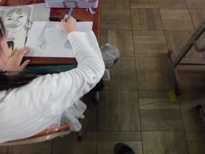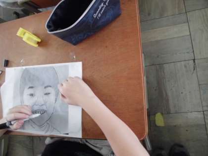 自分の写真をトレーシングペーパーにうつしてから,その絵をよく見て描く方法です。