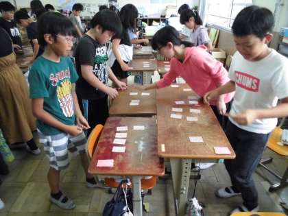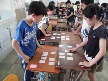 5年1組で百人一首をしている様子です。最近,赤の札に取り組んだばかりなのに,覚えている子多く,関心の高さにびっくりします。百人一首担当の子どもたちが,進行役となってみんなで百人一首を楽しんでいます。
