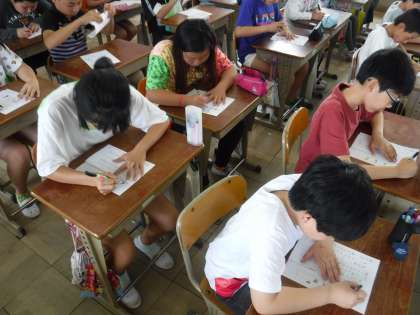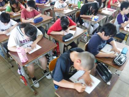 姿勢や「止め・はね・はらい」を意識しながら書いていました。