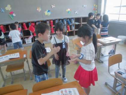 音楽科「はくをかんじてリズムをうとう」の学習の様子です。歌に合わせてリズムうちに挑戦しています。