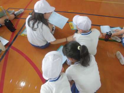 昨日は,6年生のお兄さん,お姉さんに教えてもらいながら体力テストに挑戦しました。はじめてチャレンジする種目も多く困っている様子も見られましたが,6年生が優しく教えてくれたり,記録を書いてくれたりしてくれたおかげで,無事1年生も最後までやりきることが出来ました。6年生の皆さん,ありがとうございました!!
