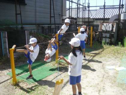 体育では,鉄棒あそびをしています。