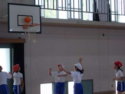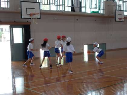 3人制バスケットボール 公開日 2019/06/18 更新日 2019/06/18 5年生の部屋 体育の学習で3人制バスケットボールをしました。パスをして,相手チームがいないところに走り,パスをまた受けて,シュートができるように考えています。しばらくは,水泳,運動会の練習等でできませんが,秋から冬にかけて,5人制のバスケットに結び付けたいと思います。