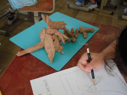 切ってかきだしてくっつけて 公開日 2019/06/19 更新日 2019/06/19 3年生の部屋 ひもや,竹串,へらをつかってねんどの作品を作りました。 想像力をふくらませて,様々なものを作っていました。