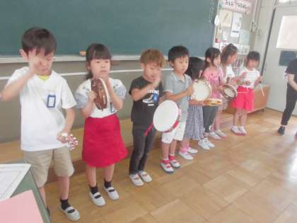「はくをかんじてリズムをうとう」の学習の様子です。みんなで「ぶんぶんぶん」のリズムうちをしました。