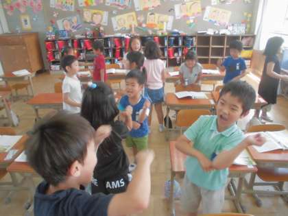 「はくをかんじてリズムをうとう」の学習「じゃんけんぽん」の様子です。