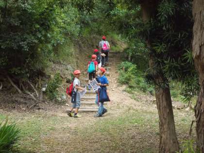 裏山ラリーでグループごとに裏山を巡りました。