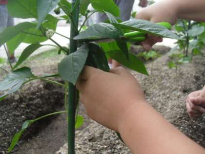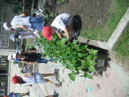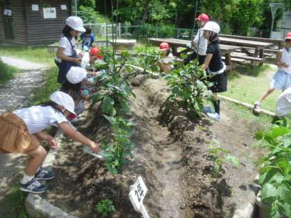 2年生の育てている野菜が,ぐんぐん育ち,次々と収穫していっています。