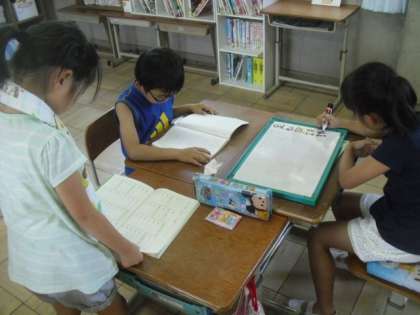 国語の学習で,同じぶぶんをもつかん字クイズをしました。