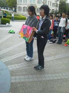 全校生が心を込めて折った折鶴を置き、大きな声で平和の誓いをしました。