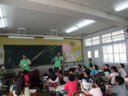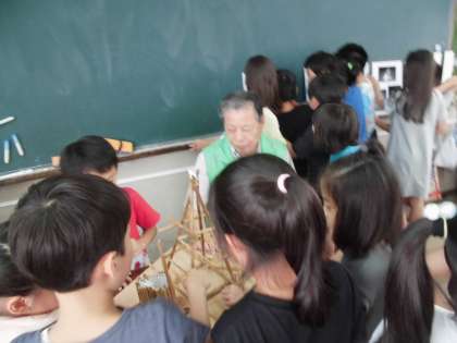 実際にヨシを見せていただいたり,ヨシのオブジェを見せていただいたりして,子どもたちは興味津々でした。