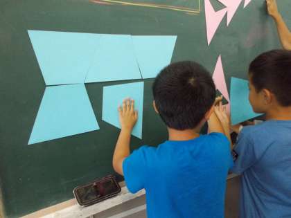 など,自分の考えていたのと違う模様を発表する友達の意見に,さまざまな反応をしていました。