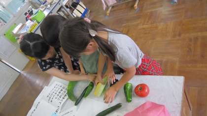 いろいろな夏野菜(実物!)を持ってきてくださり・・・