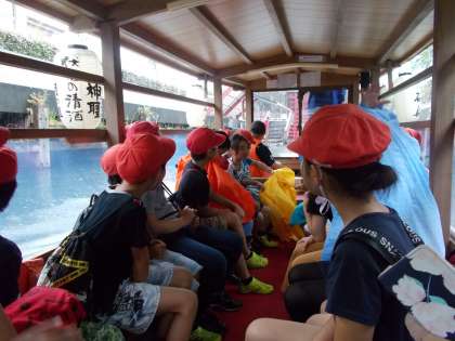 あいにくの雨でしたが,十石舟に乗せてもらえることになりました。