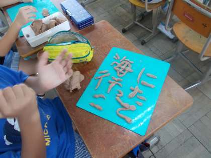 夏休みの思い出をねんどで表しました。