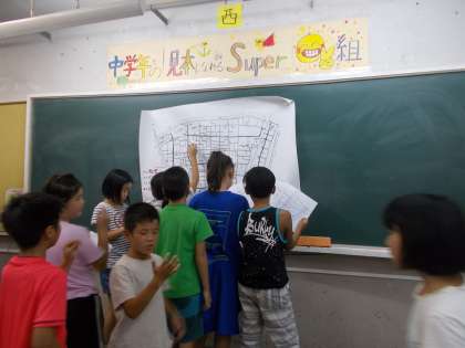 週末に各自が調べてきた校区にある防災設備を1枚の紙にまとめました。