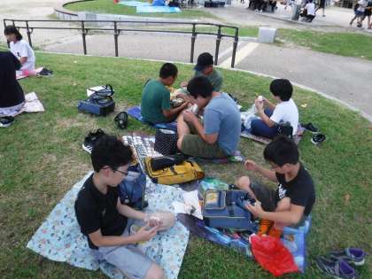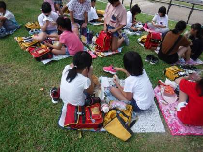 その後の昼食の時間も短い時間ではありましたが,お家の人に用意していただいたおにぎりなどをおいしそうに食べていました。