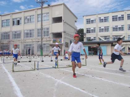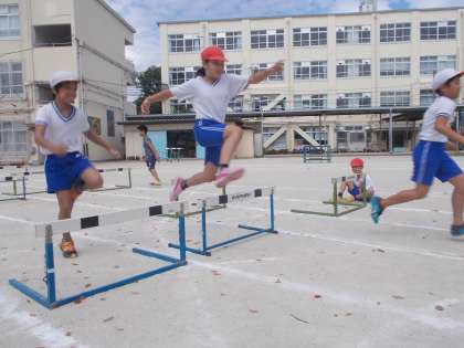 今まで全員同じハードルの間隔で跳んでいたのですが,今日は,自分に合った間隔を見つけました。