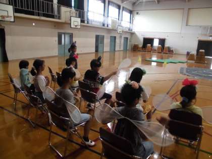 文化芸術による子ども育成事業として,劇団風の子の方の劇を12月4日に向島小学校の体育館で上演していただく予定です。また,特別に4年生は「森がいくつ」という歌を一緒に歌ったり,妖精が登場するシーンで代表の児童がお芝居の中で出演させていただいたりすることになりました。そこで,10月4日(金)には,事前ワークショップということで体育館で劇団の方と一緒に練習をしました。子どもたちは,妖精の役になりきったり,動きを確認したりして劇団の方と一緒に出演することをイメージできたようです。また,一つ楽しみが増えました。