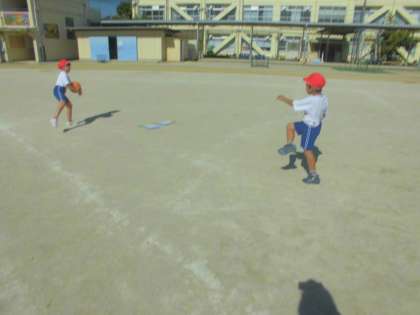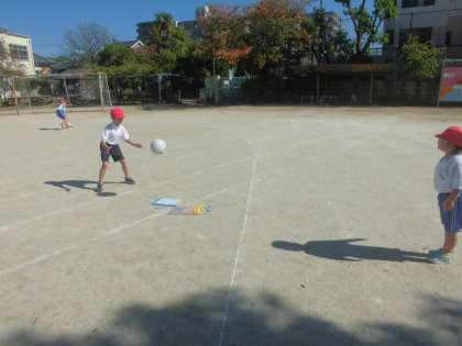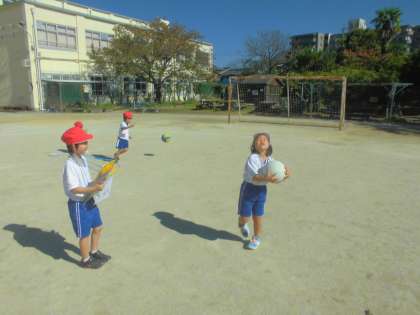 体育の学習では,「ボールあそび」を行っています。今日は,1人でできるボールあそびをしました。