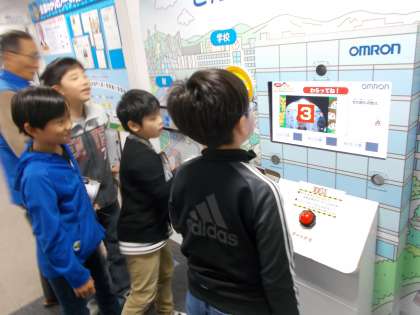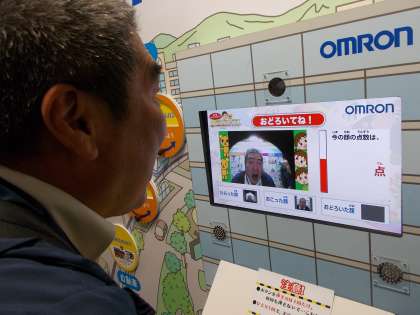オムロンのブースは,顔認証技術をゲーム形式にした「表情コンテスト」。