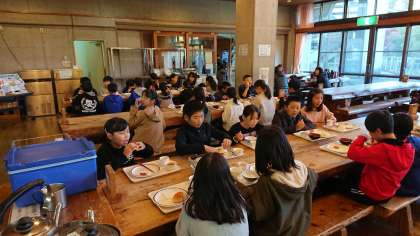 2日目の朝食です。ご飯やパン、味噌汁など自分の好みに合わせて、おいしくいただきました。