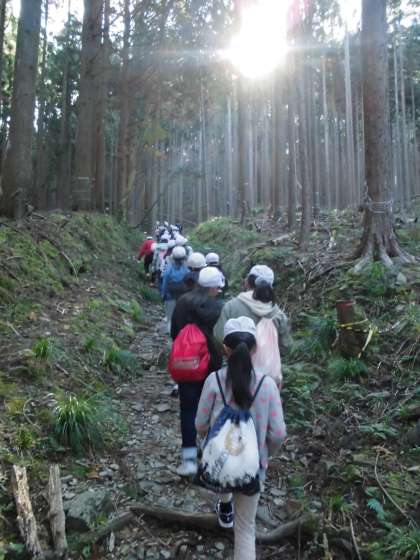 はじめは,全員そろって山道を登ります。みんな頑張っています!